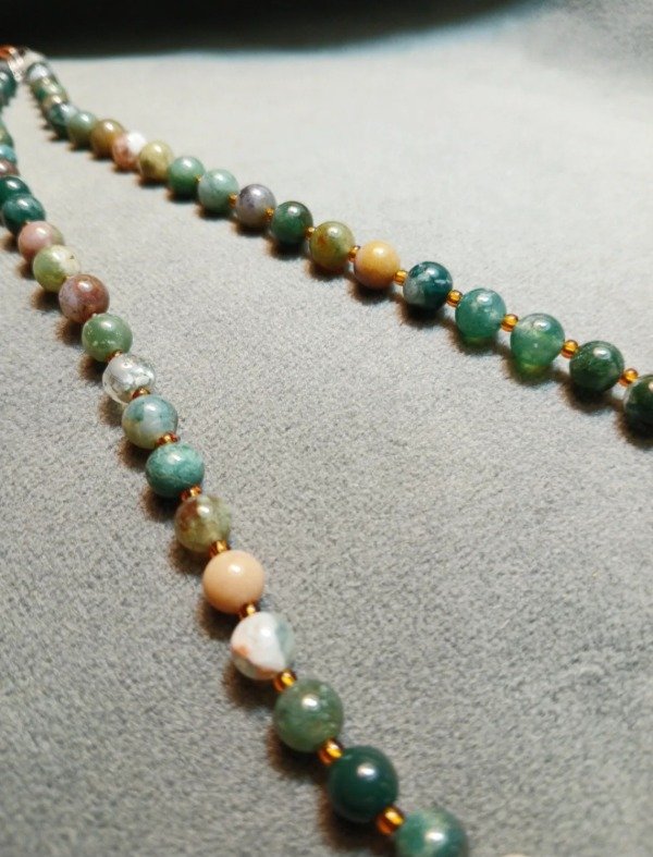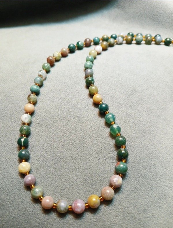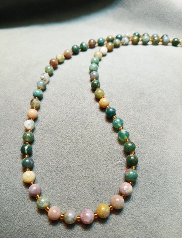 Collar de Ágata India (6mm) y detalles en mostacillas de vidrio checo.