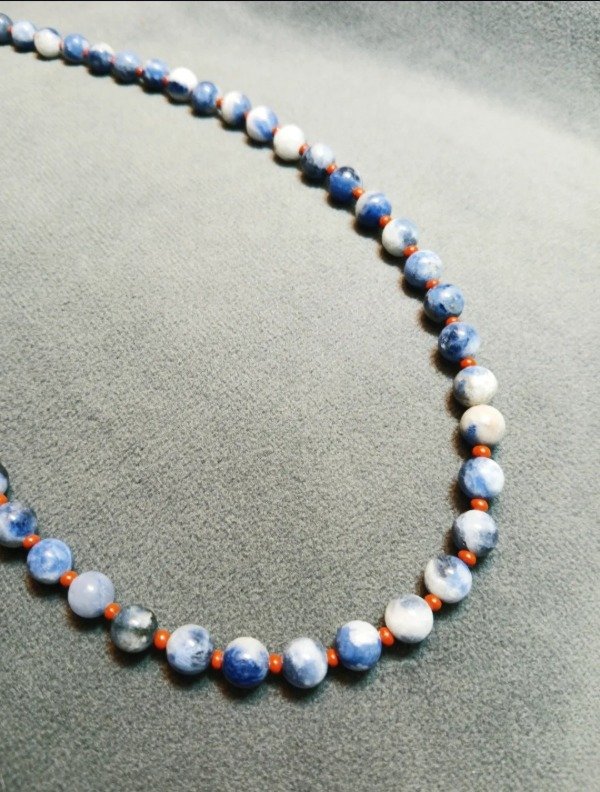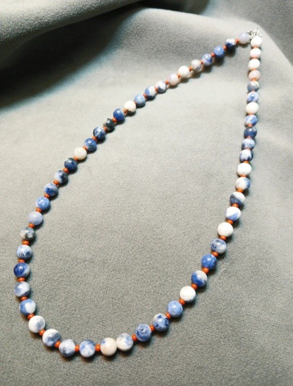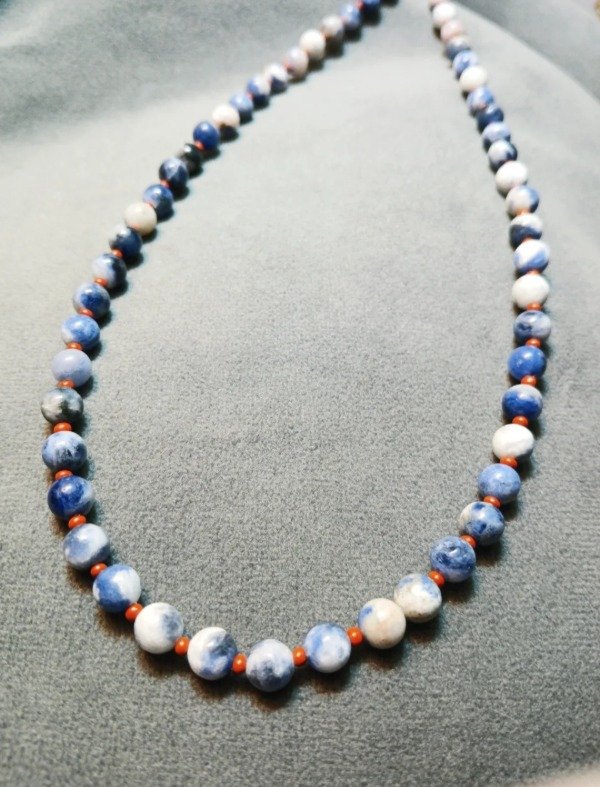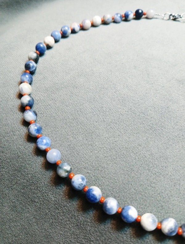 Collar de Sodalita (6mm) y detalles en mostacillas de vidrio checo.