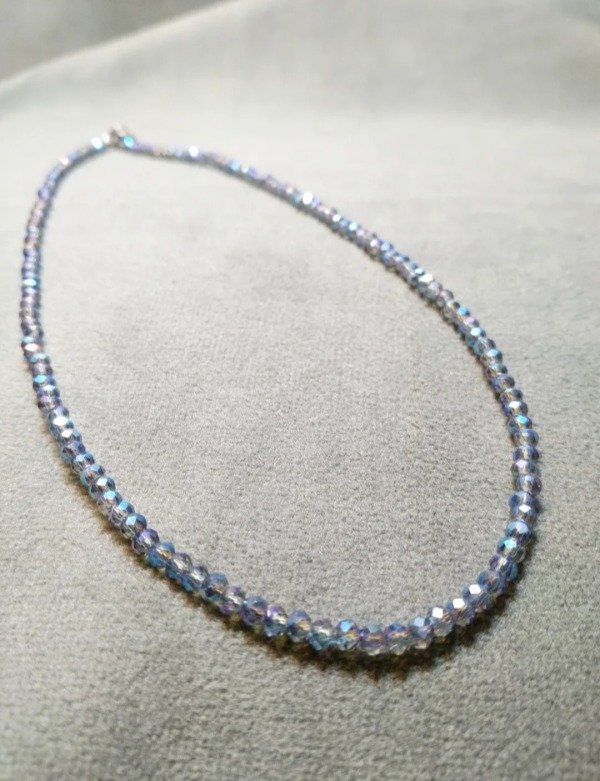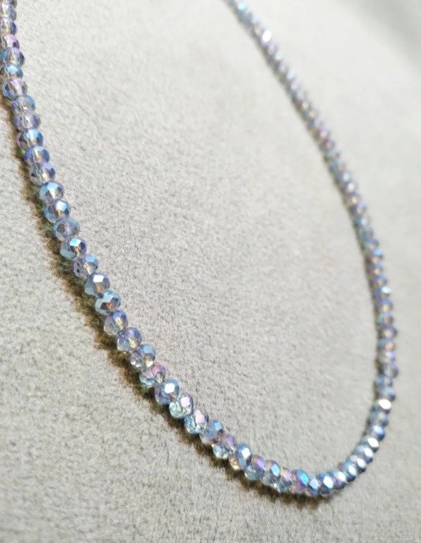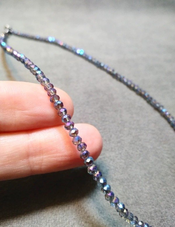 Gargantilla cristal de roca facetada color azul tornasol (3mm). Cierre de acero quirúrgico.