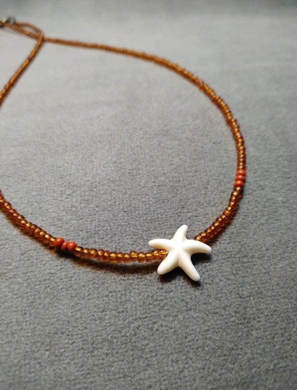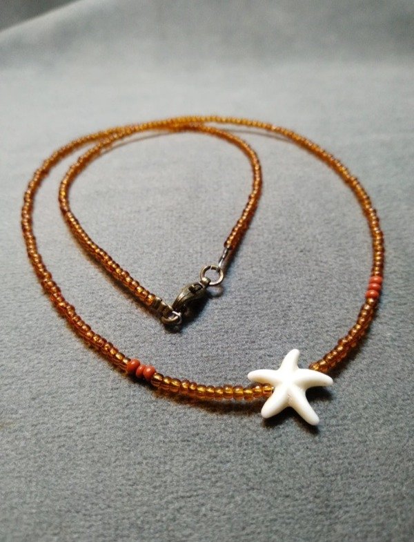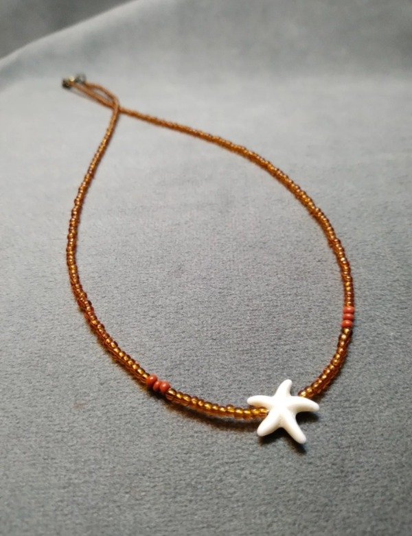 Gargantilla con estrella y mostacillas de vidrio checo.