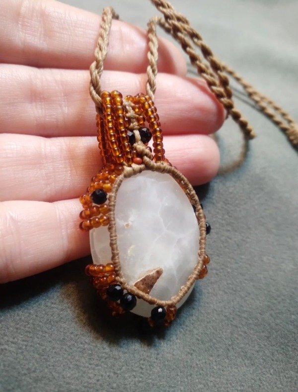 El ónix blanco aporta calma y claridad, ayudando a aquietar la mente y a generar una sensación de armonía interior.
