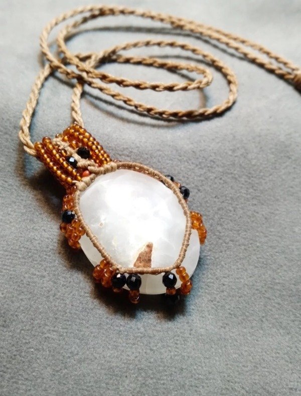 Gargantilla tejida en micromacramé con Onix blanco detalles en espinella negra y mostacillas de vidrio checo.