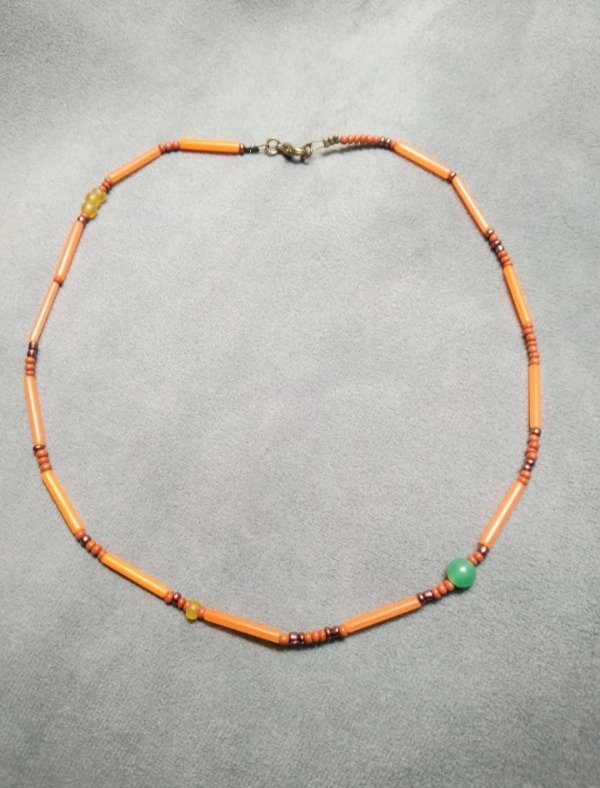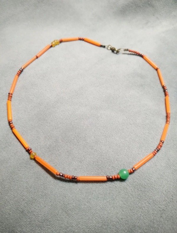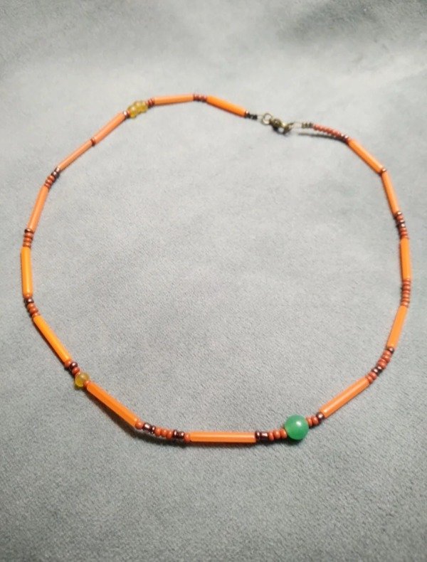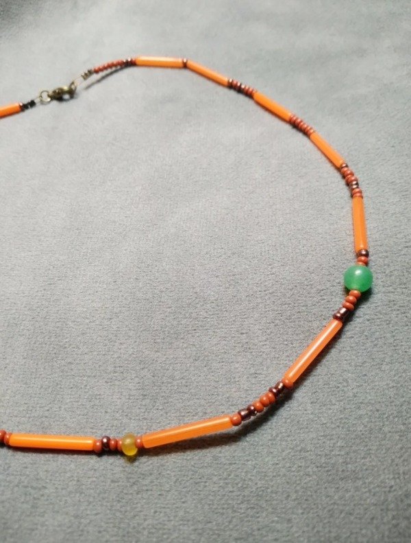 Gargantilla con detalle en aventurina verde, mostacillas y canutillos de vidrio checo.
