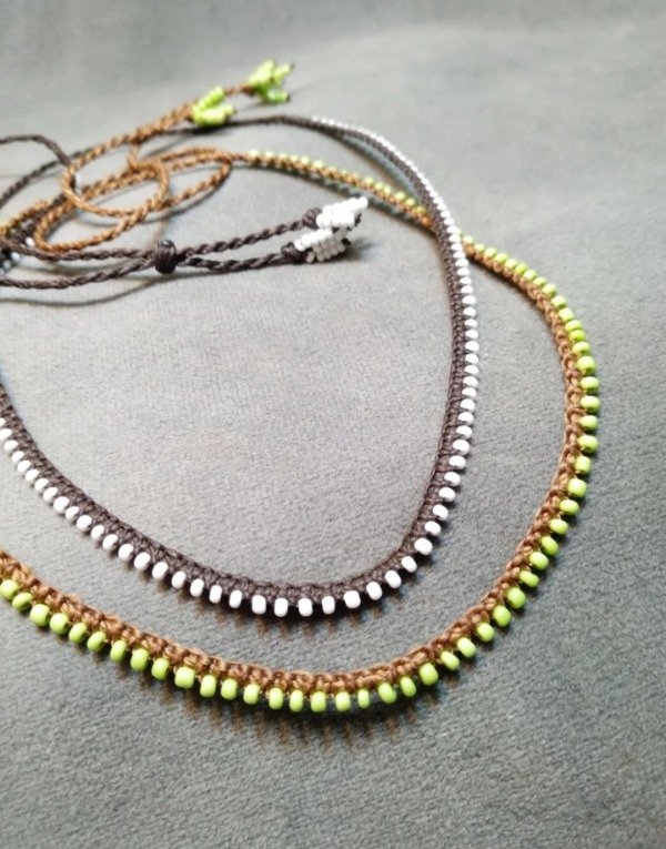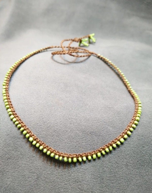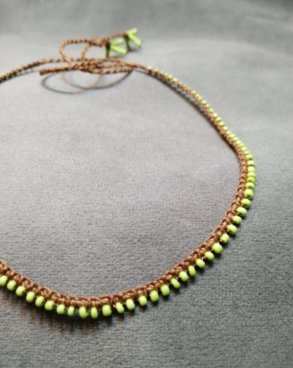 Gargantilla tejida en micromacramé con puras mostacillas de vidrio checo.