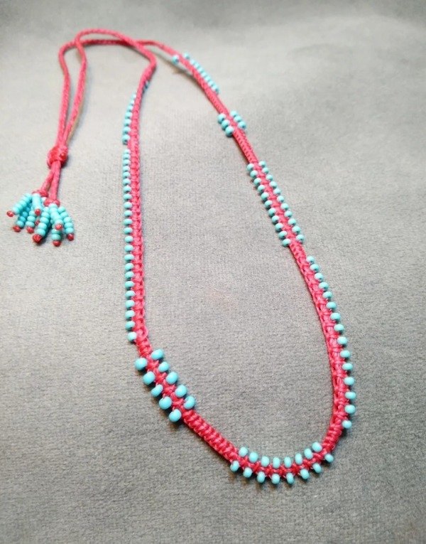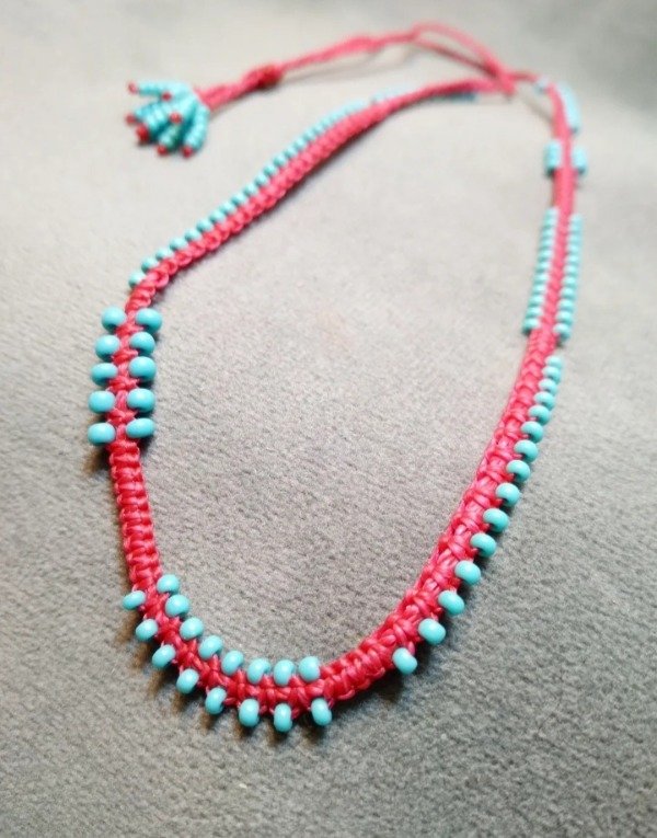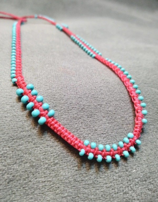 Gargantilla tejida en micromacramé con mostacillas de vidrio checo.