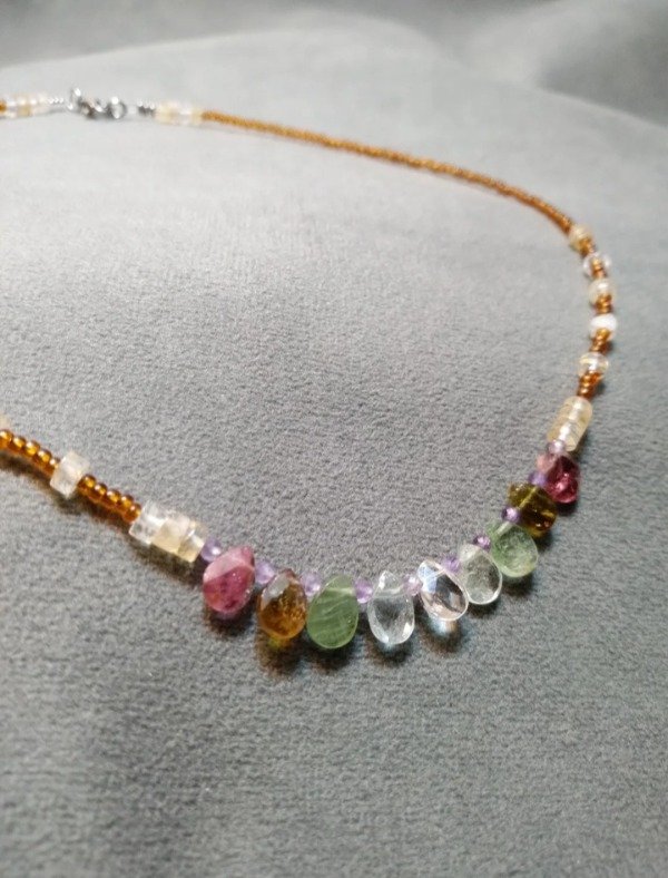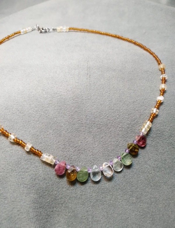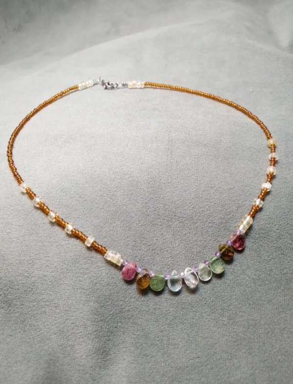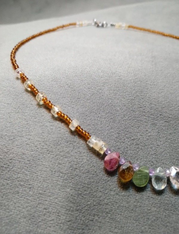 Gargantilla con mini gotas de Turmalinas facetadas y donas de citrino.