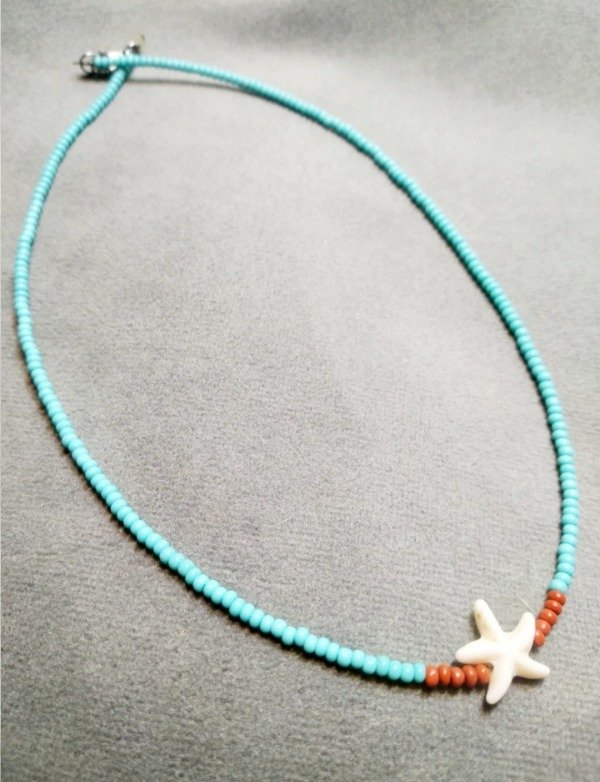> Gargantilla turquesa: estrella con cuerda de mostacillas turquesas de vidrio checo. Cierre de fantasía.