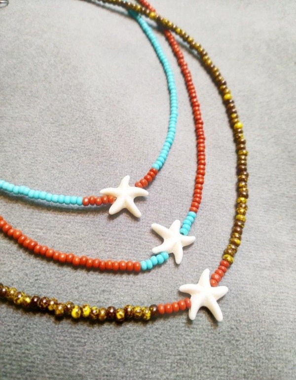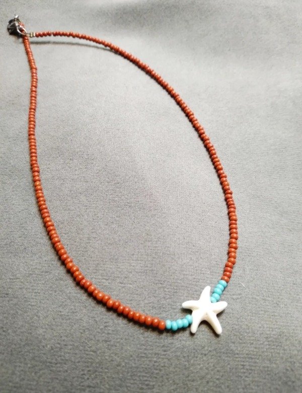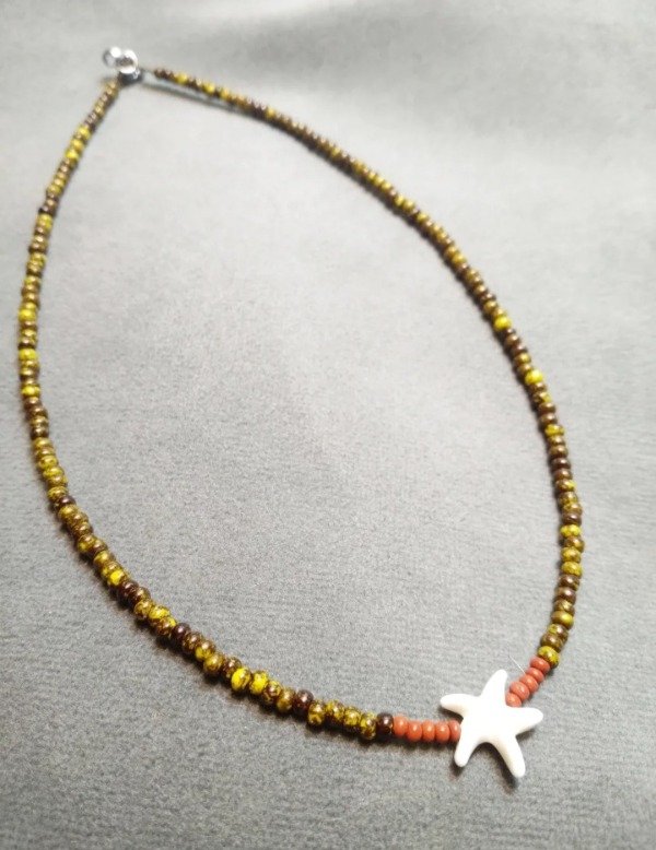 > Gargantilla caramelo: estrella con cuerda de mostacillas color caramelo. Cierre de fantasía.