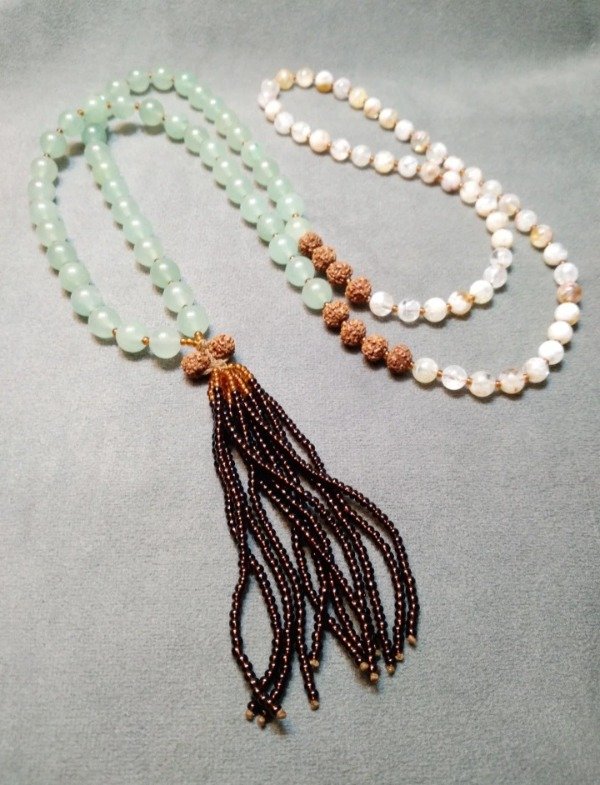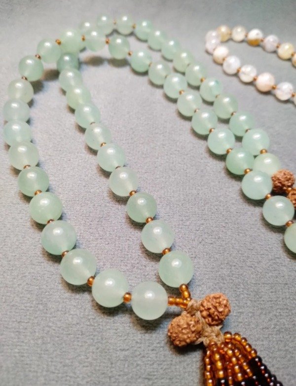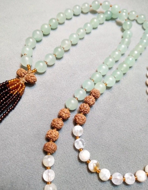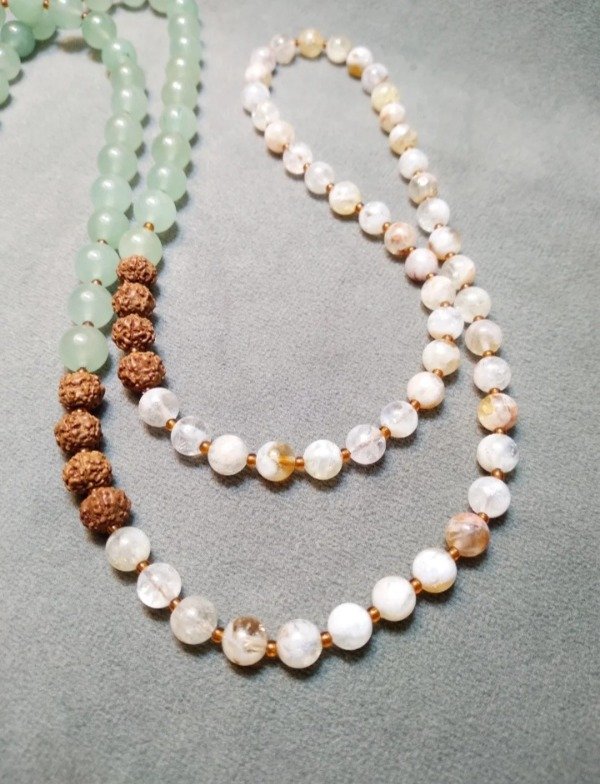 Con cuarzo verde, citrino y semillas Rudraksha.