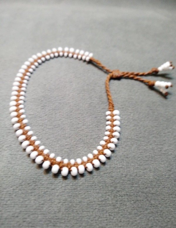 Pulsera tejida en micromacramé con mostacillas de vidrio checo. Ajustable.