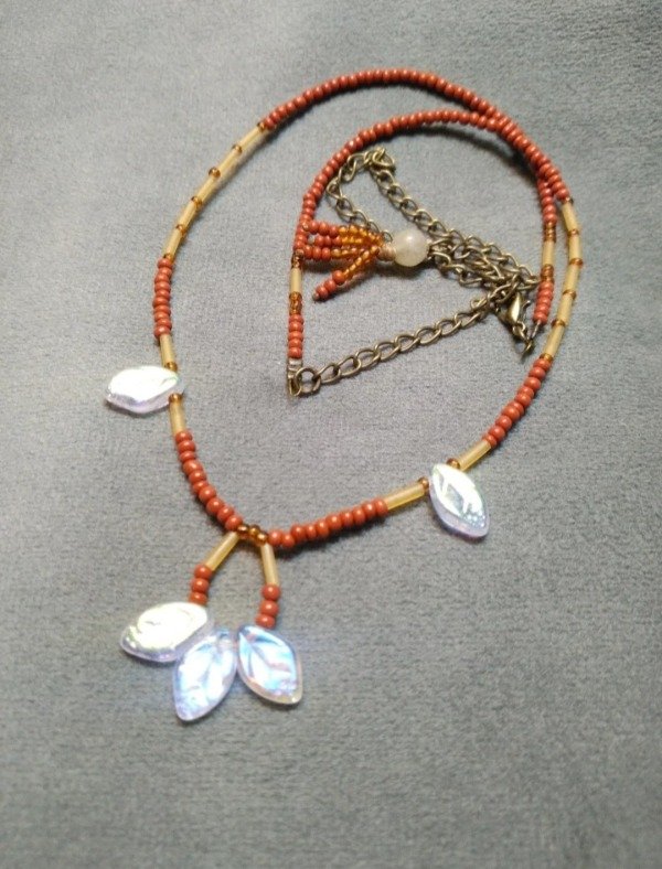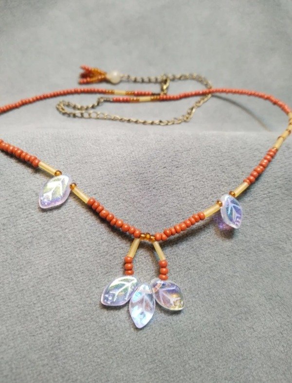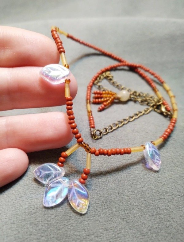 Gargantilla con hojitas de vidrio japones y mostacillas checas.